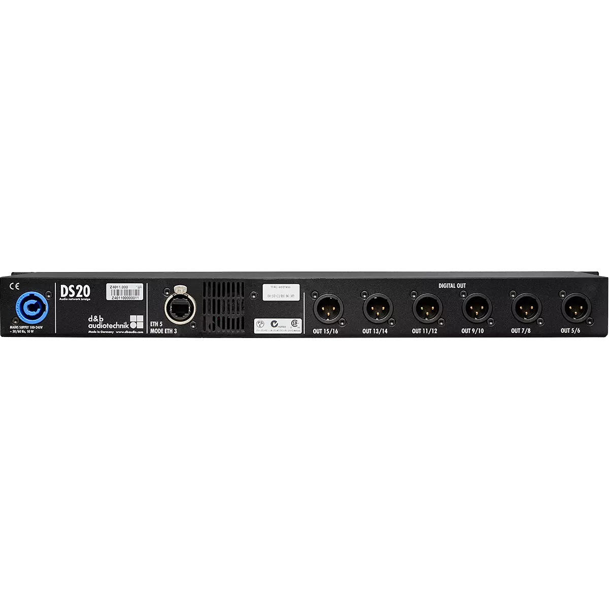 DS20 Audio Network Bridge tvoří zásadní článek v signálovém řetězci d&b. Slouží jako rozhraní mezi protokolem Milan™ (postaveném na standardu AVB) a digitálními audio signály AES3, přičemž současně zajišťuje distribuci ethernetových řídicích dat.