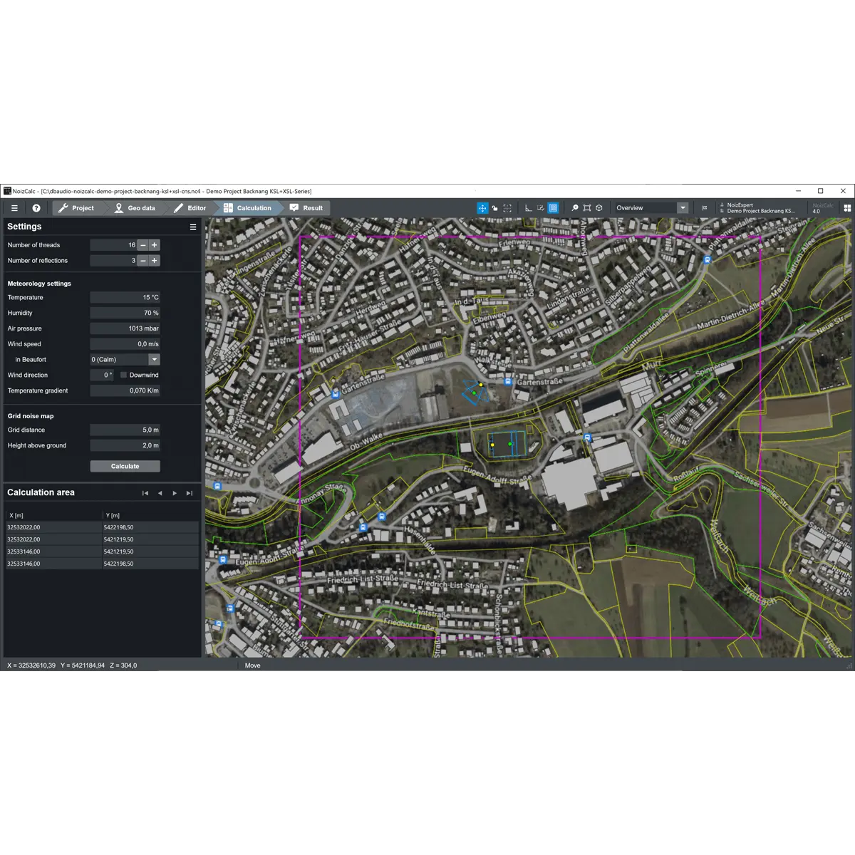 Návrháři mohou v reálném čase simulovat změny v umístění a nastavení každého prvku systému, dokud nedosáhnou naprosté dokonalosti. NoizCalc vznikl ve spolupráci s experty ze společnosti SoundPLAN, která patří ke světové špičce v oblasti predikce hluku v životním prostředí.